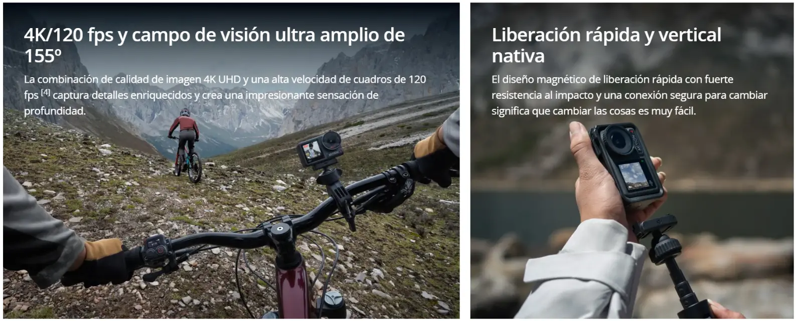 El Osmo Action 4 Adventure Combo de DJI es una cámara de acción versátil con sensor de 1/1,3 pulgadas, grabación 4K a 120 fps, estabilización avanzada y resistencia al agua y frío extremo. Diseñada para aventuras, ofrece pantallas duales, video de 10 bits para mayor rango dinámico y batería de larga duración